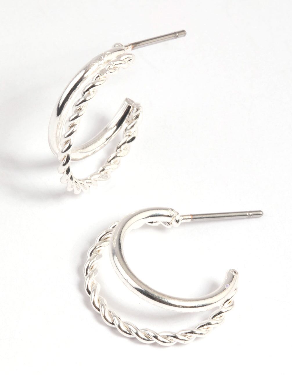 Silver Twisted Huggie Hoop Earrings
