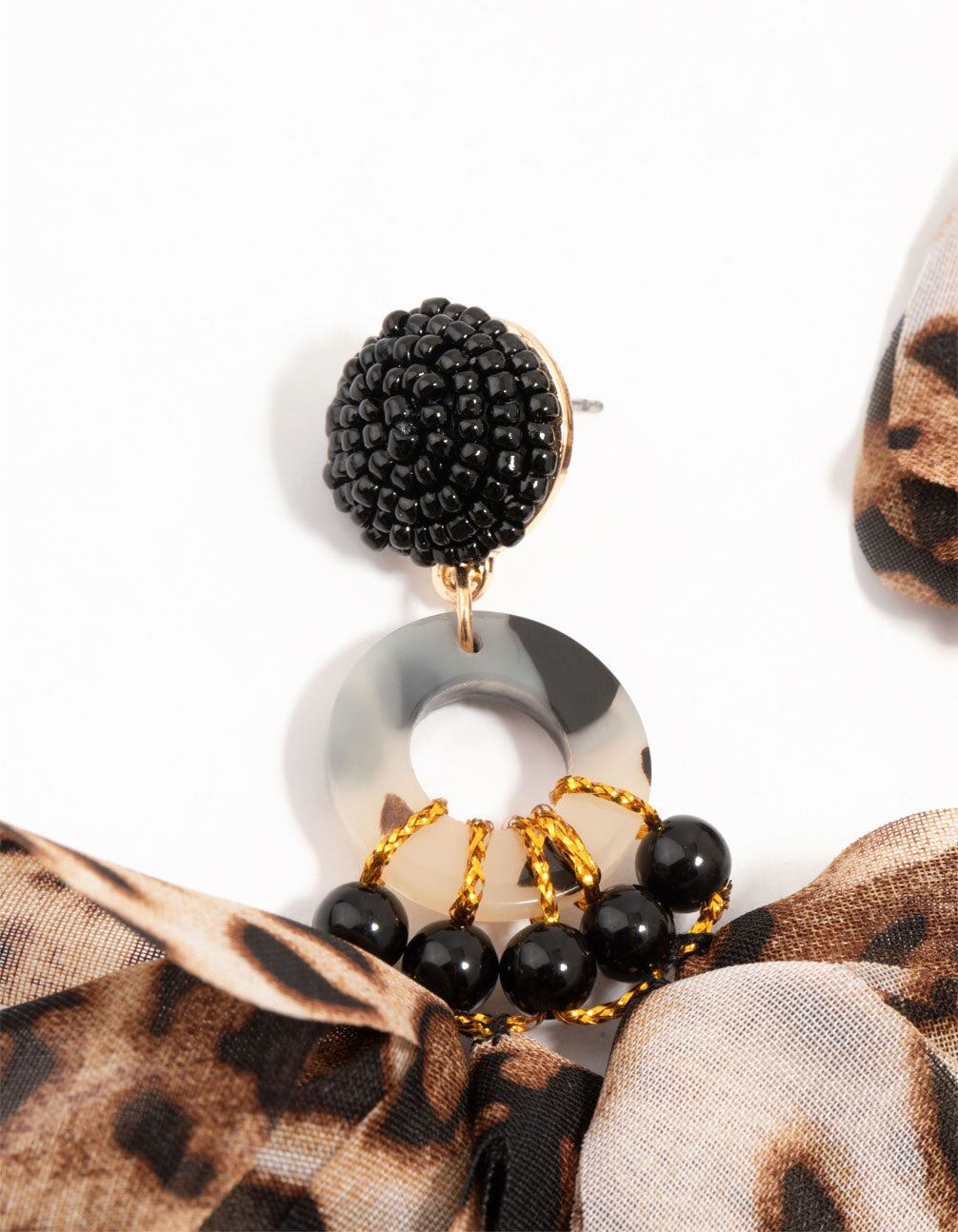 Leopard Print Fabric & Acrylic Drop Earrings
