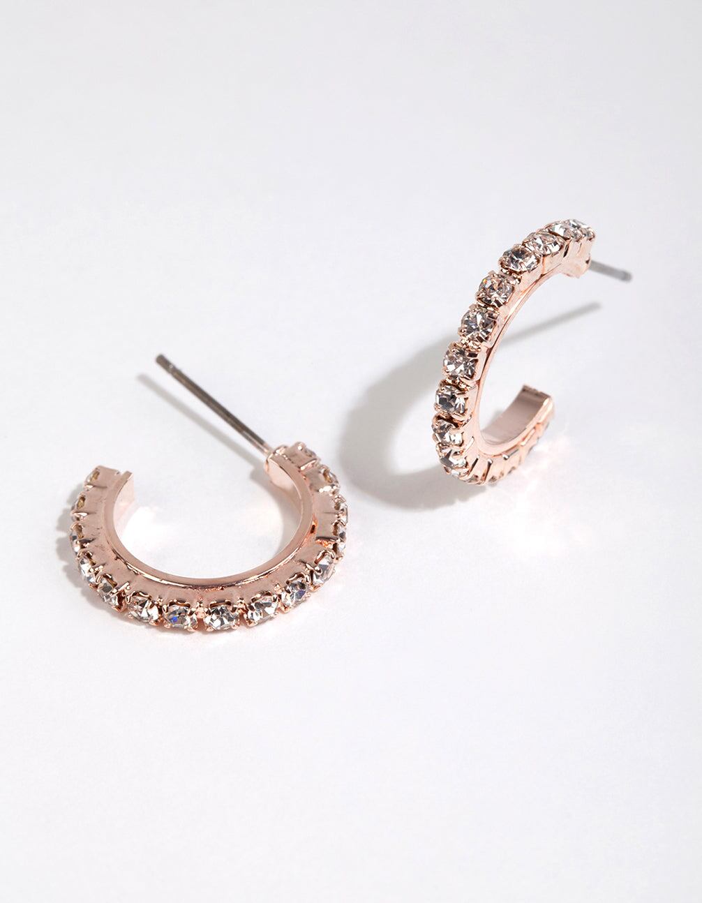 Rose Gold Riased Diamante Huggie Hoop Earrings
