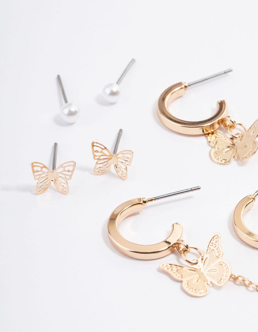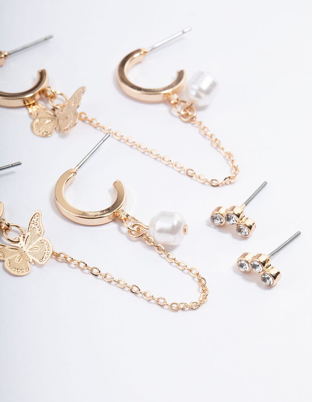 Treat yourself to some ear candy from our Curated Collection! Style this assorted pack of gold-toned. butterfly and pearl embellished huggie earrings. This pack includes five sets of earrings. perfect for versatile styling.