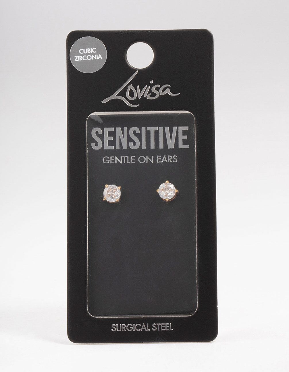 Gold Plated Surgical Steel Round High Claw Stud Earrings