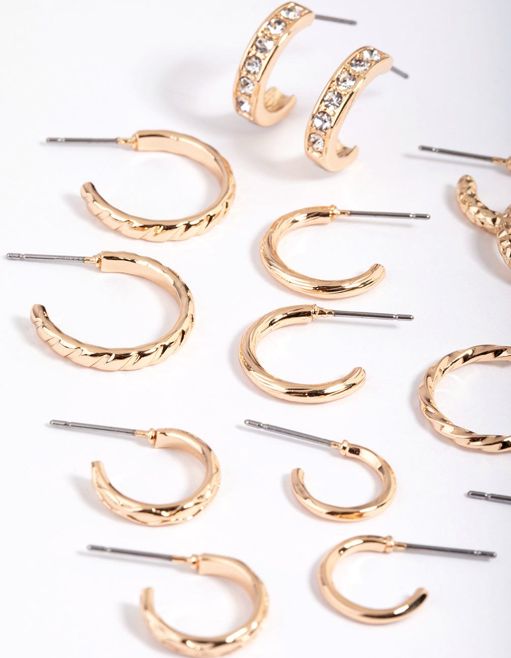 Gold Mixed Diamante Hoop Earring 8-Pack
