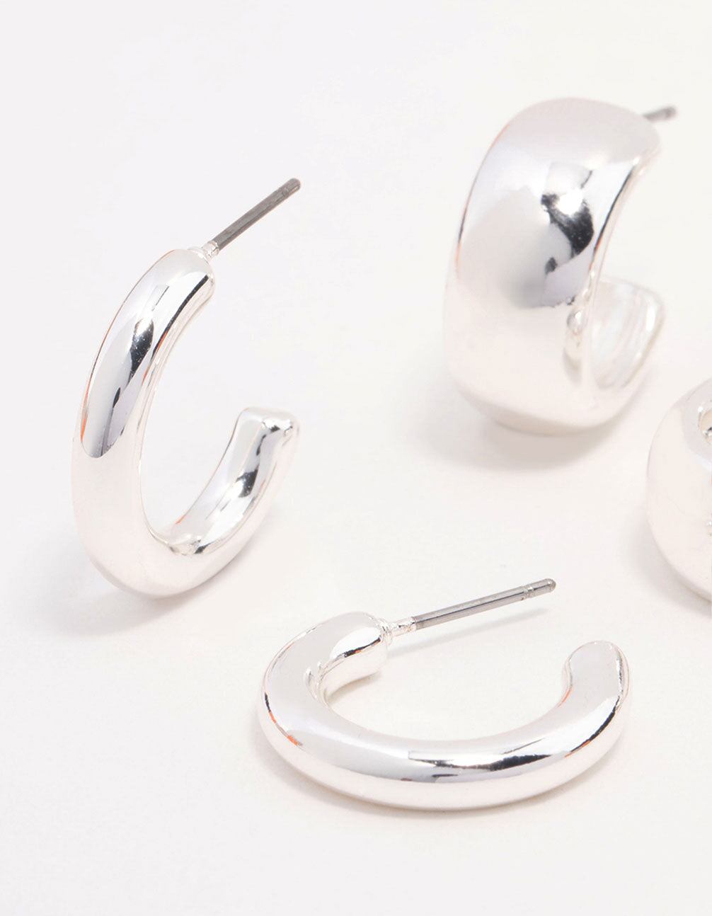 Silver Plated Chunky Hoop Earrings 3-Pack