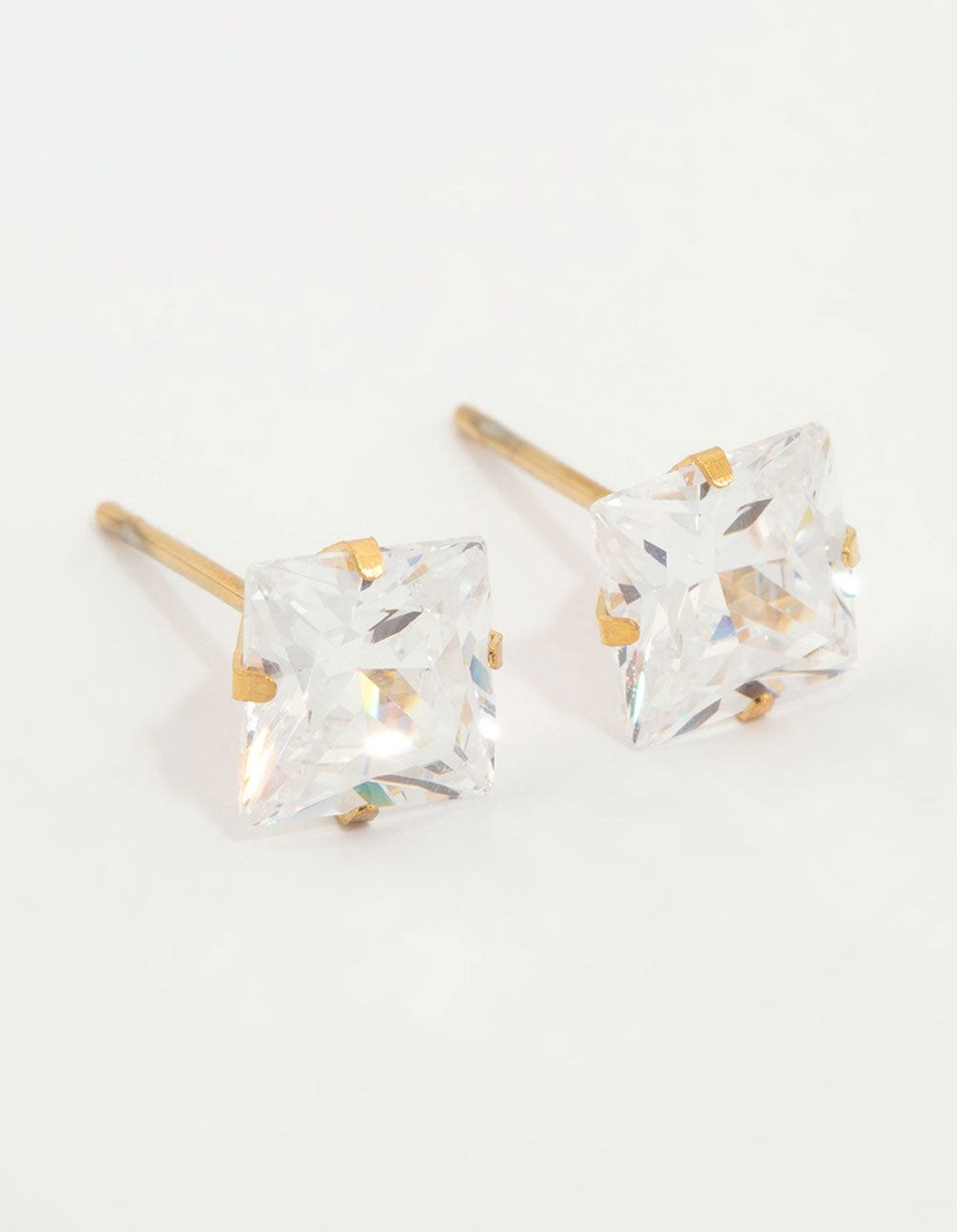 Waterproof Gold Plated Stainless Steel Princess Cut Cubic Zirconia Stud Earrings