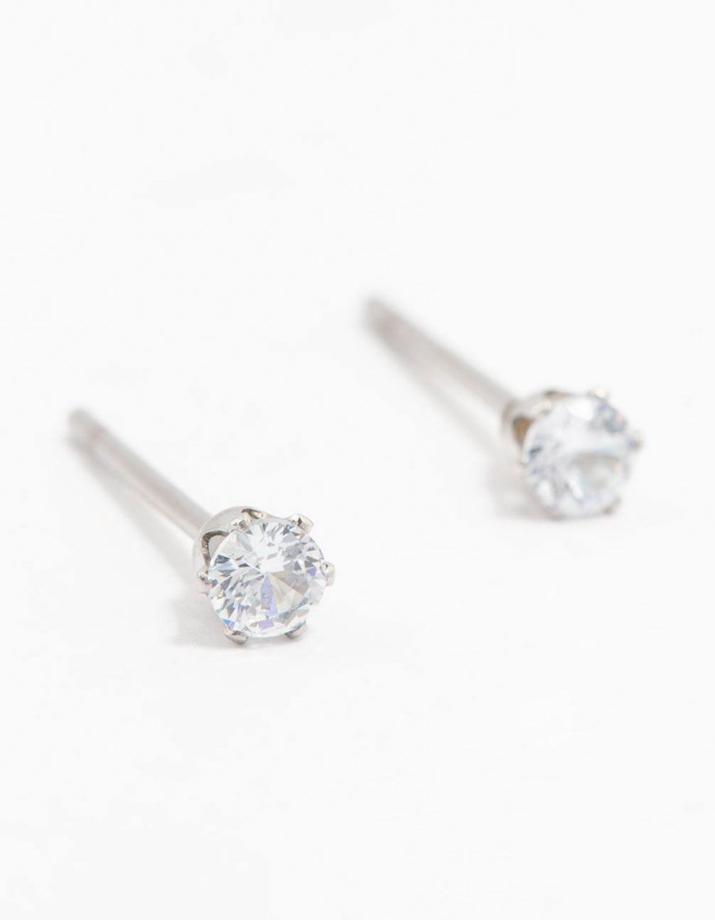 Waterproof Stainless Steel Cubic Zirconia Stud Earrings 3 MM