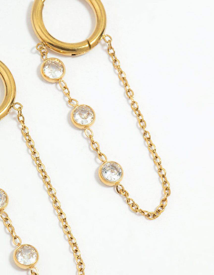 Waterproof Gold Plated Stainless Steel Cubic Zirconia Chain Droplet Earrings 2-Pack