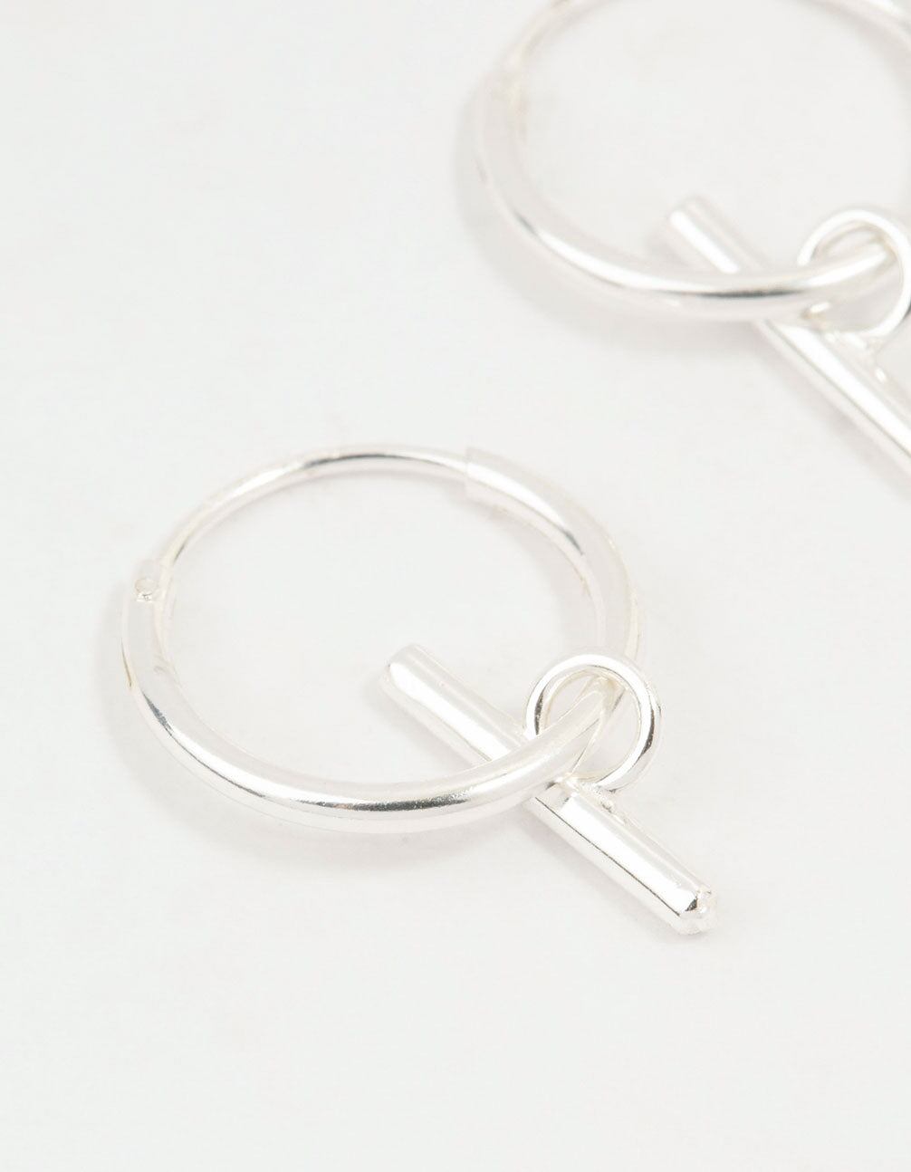 Rock a playful hoop look with these sophisticated earrings! Featuring a sterling silver base and a trendy T bar drop design. they give the classic hoop a fresh. contemporary twist. Hoop it up and add a touch of fun to your style!