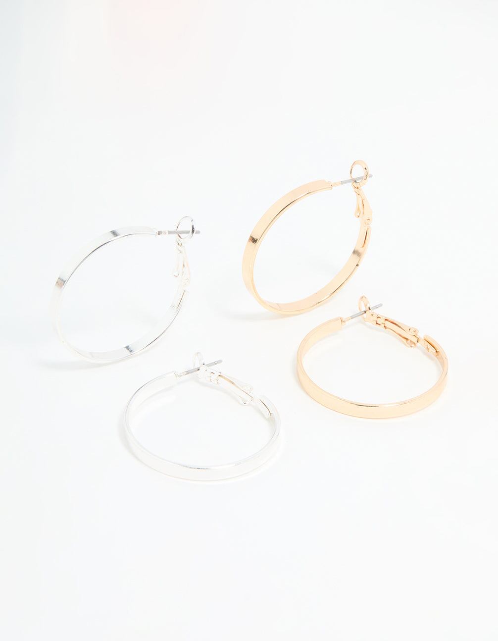 Add some effortless flair to your look with this Mixed Metal Flat Hoop Earrings Pack. Featuring sleek. flat hoops in a chic mix of metals. this versatile jewellery set is a must-have for any collection. Perfect for daytime outfits or evening glam. these lightweight earrings pair beautifully with anything?from casual jeans and a tee to your favourite party dress. Whether you're dressing up for a night out or keeping it cool for a brunch date. these stylish hoop earrings are the ideal finishing touch. Their minimal yet modern design makes them easy to wear every day while still adding a touch of elegance. Upgrade your accessory game with this timeless pair!