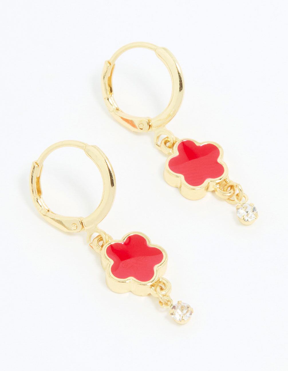 Gold Plated Red Cubic Zirconia Floral Droplet Earrings