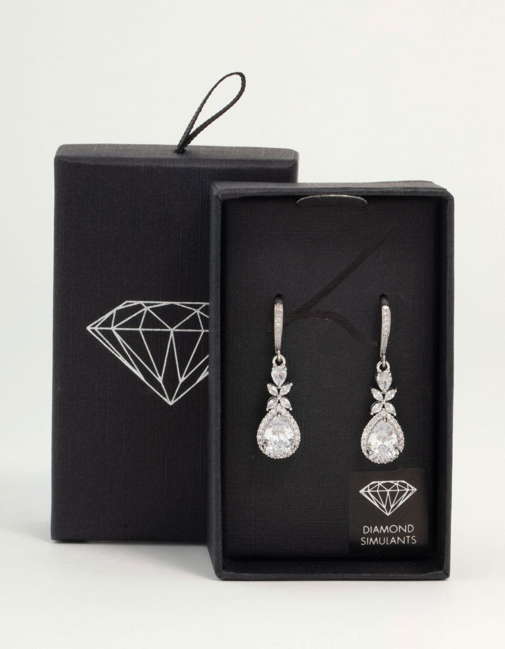 Upgrade your style with these stunning hook earrings. They showcase an eye-catching halo and a pear-shaped diamante drop design. adding a chic finishing touch to any look.