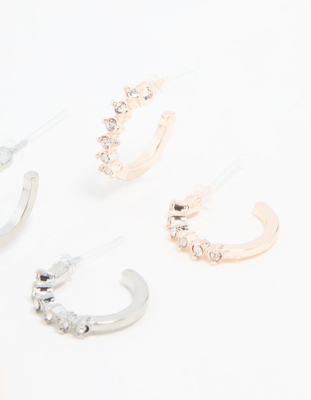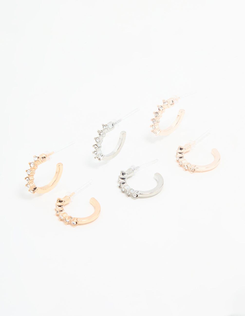 Mixed Metal Diamante Hoop Earrings 3-Pack