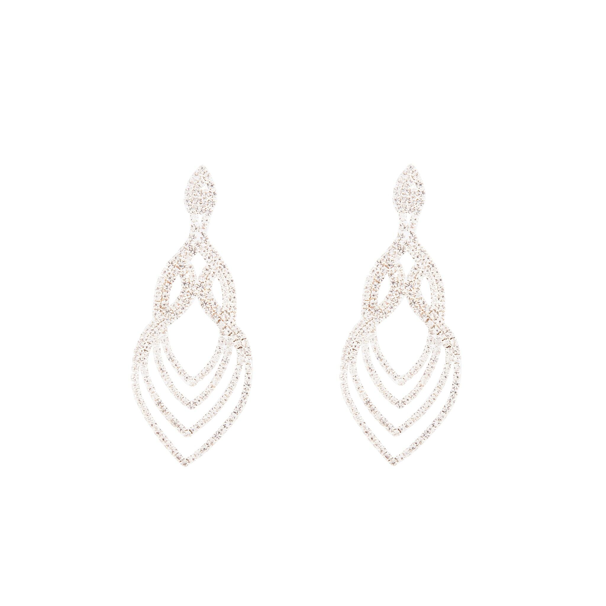 Elevate your look with these silver-toned diamante encrusted layered teardrop earrings.