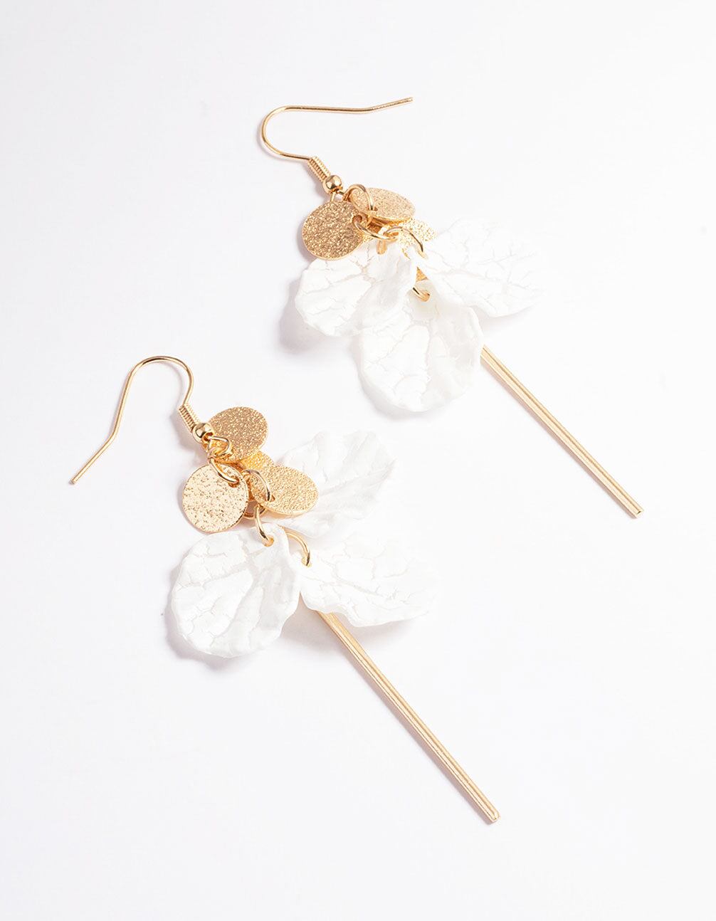 Pair these gold multi disc and petal drop earrings with some matching pieces from our Boutique Collection for a modern. 'it-girl' look.