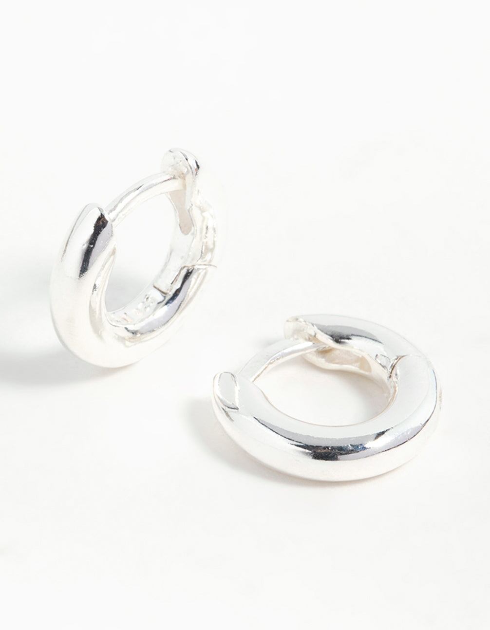 Invest in sterling-silver accessories! These dainty. silver huggies boast a chubby design. Wear them daily.