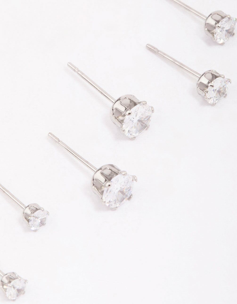 Add a touch of sparkle to your everyday ear stack with this pack of cubic zirconia stud earrings. This earring pack includes three pairs of surgical steel earrings. each designed with varying sizes of crystals. Perfect for adding a luxe touch to your stack.