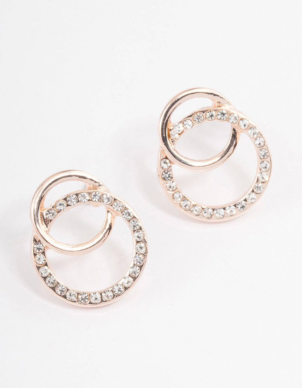 Rose Gold Diamante & Plain Circle Stud Earrings
