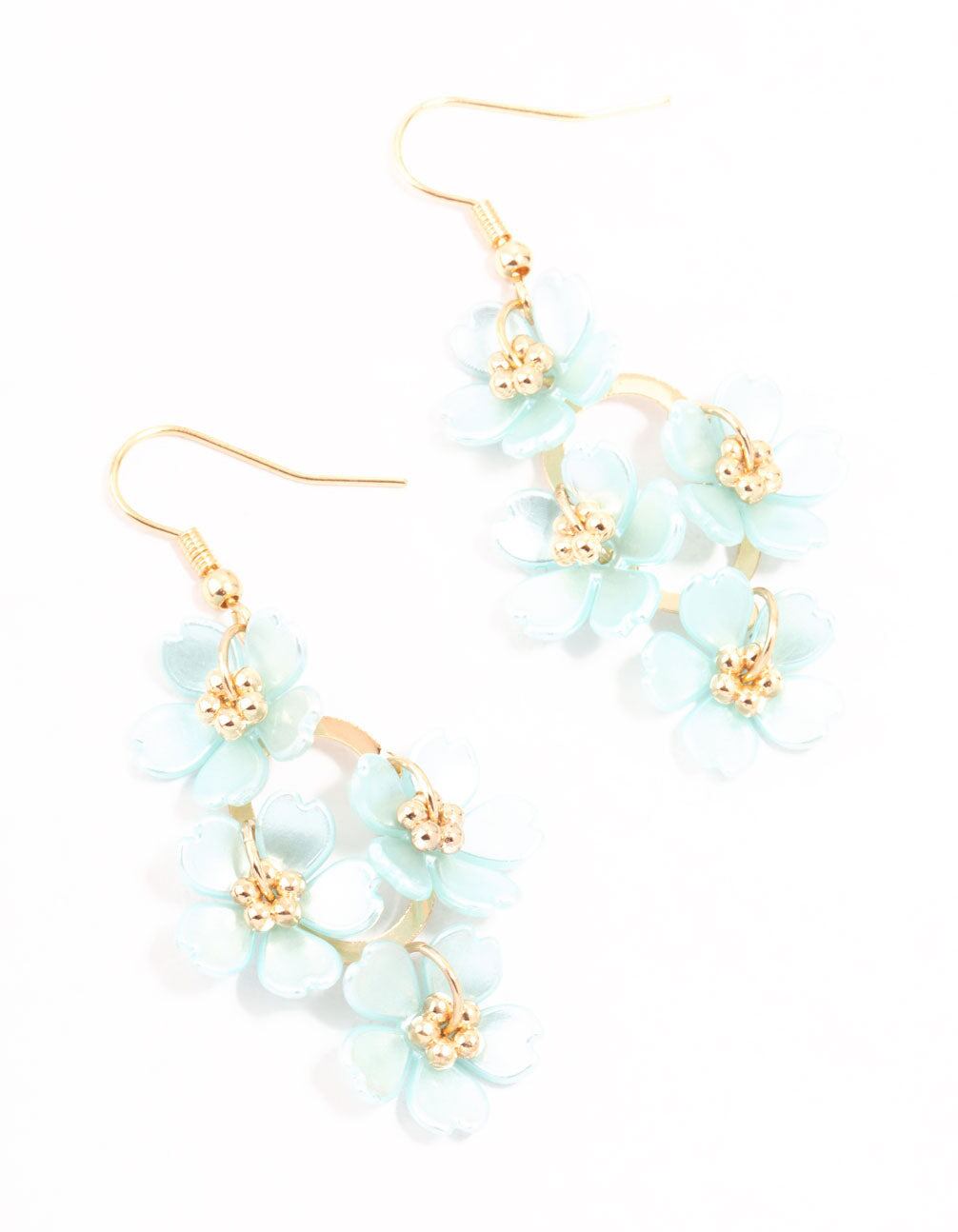 Blue Pearlised Flower Vine Gold Drop Earrings