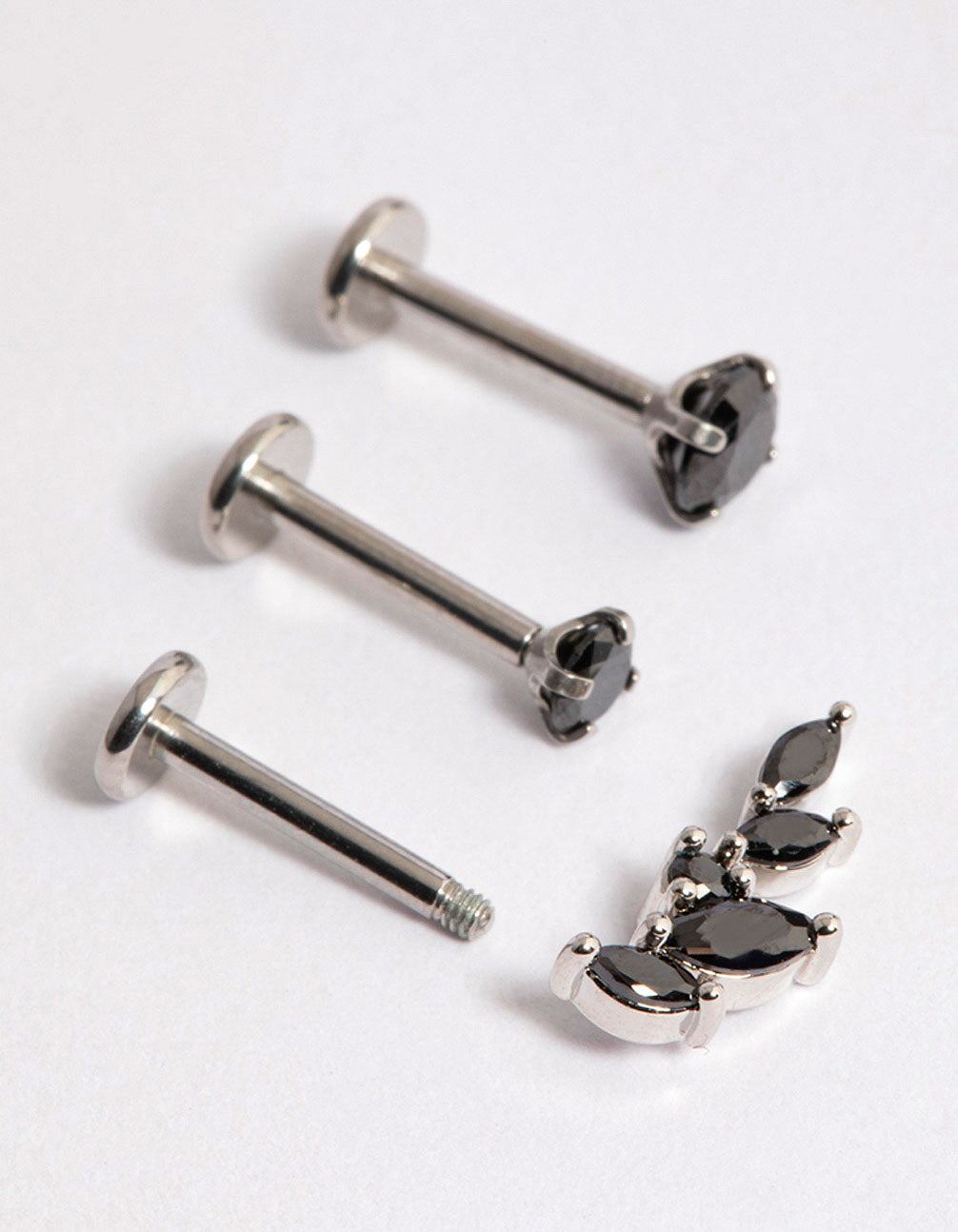 Material: Surgical SteelColour: BlackDimensions: Post Length: 8 mmGauge: 16 g / 1.2 mmThis piercing pack contains three individual flatbacks. designed with a vine feature for added interest. Flat backs make versatile ear piercings. perfect for helix. conch and tragus placements.Product InformationMaterial: 100% Surgical SteelDimensions: Post Length 8mmGauge: 16G / 1.2mmWeight: 15.3gSuitable for these piercing placements: