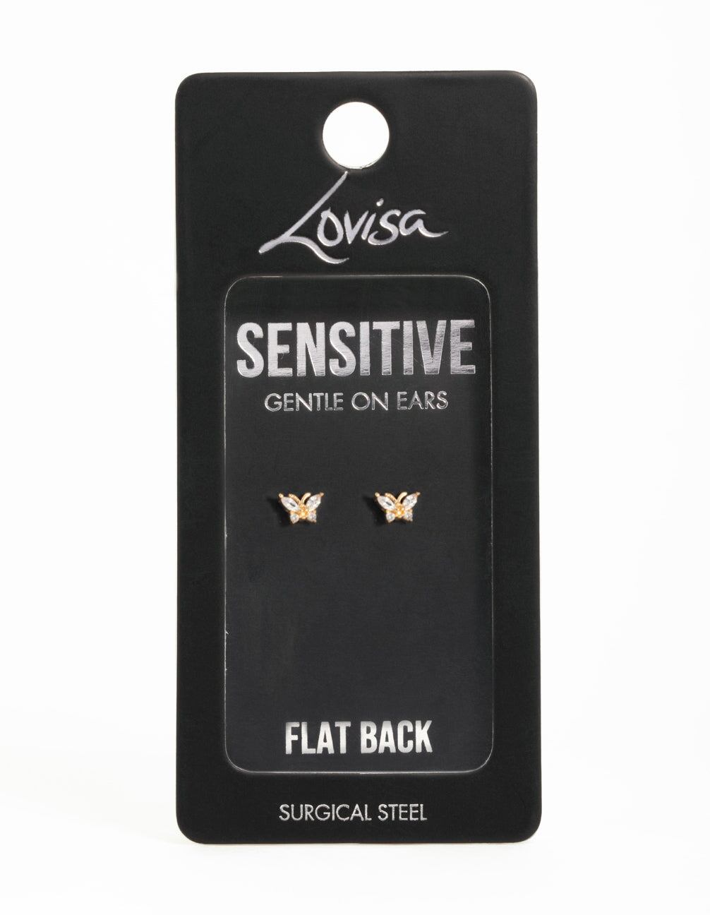 Gold Plated Surgical Steel Cubic Zirconia Butterfly Flat Back Earrings