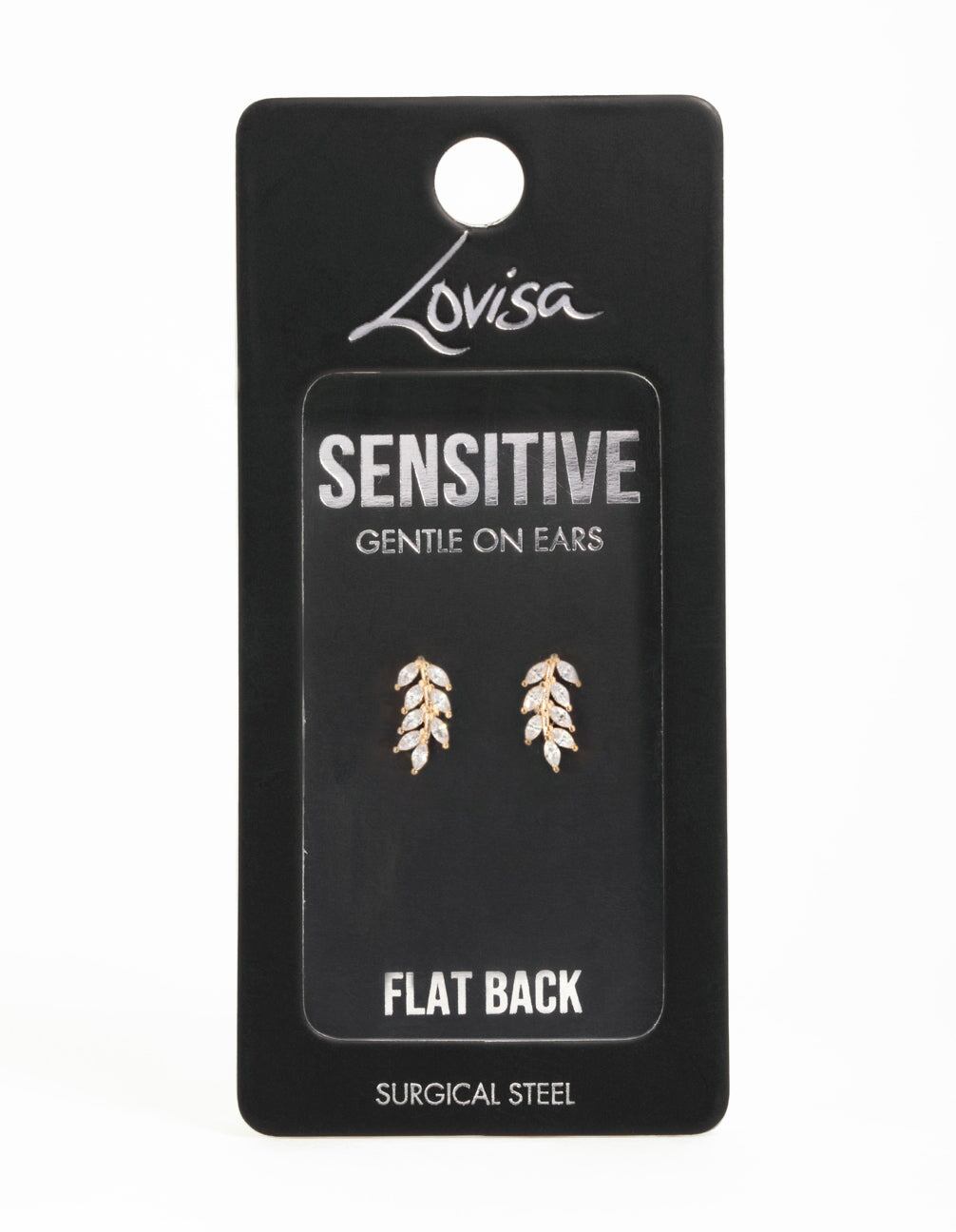 Gold Plated Surgical Steel Cubic Zirconia Leaf Flat Back Earrings