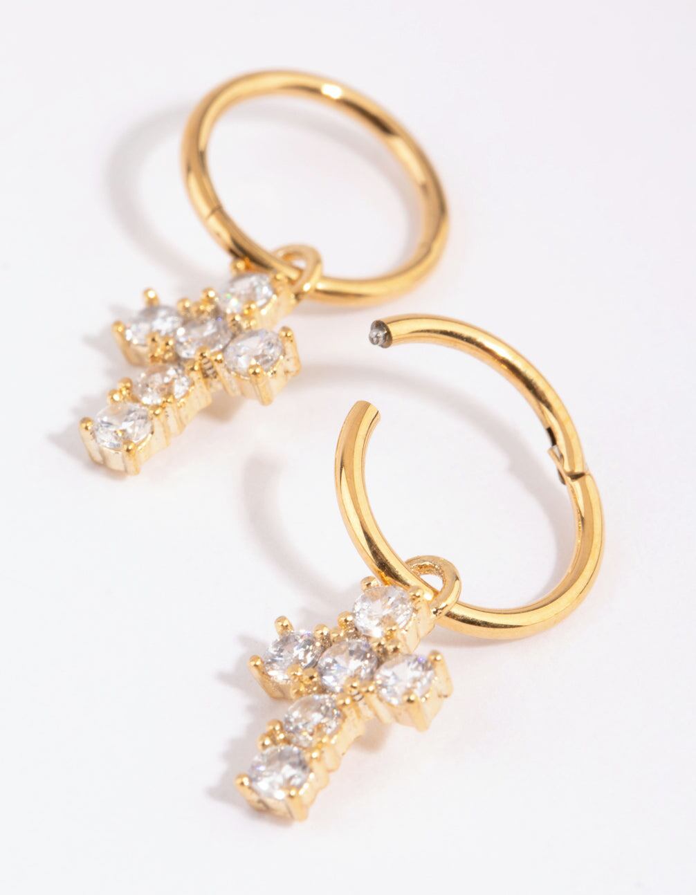Gold Plated Surgical Steel Cubic Zirconia Cross Sleeper Earrings