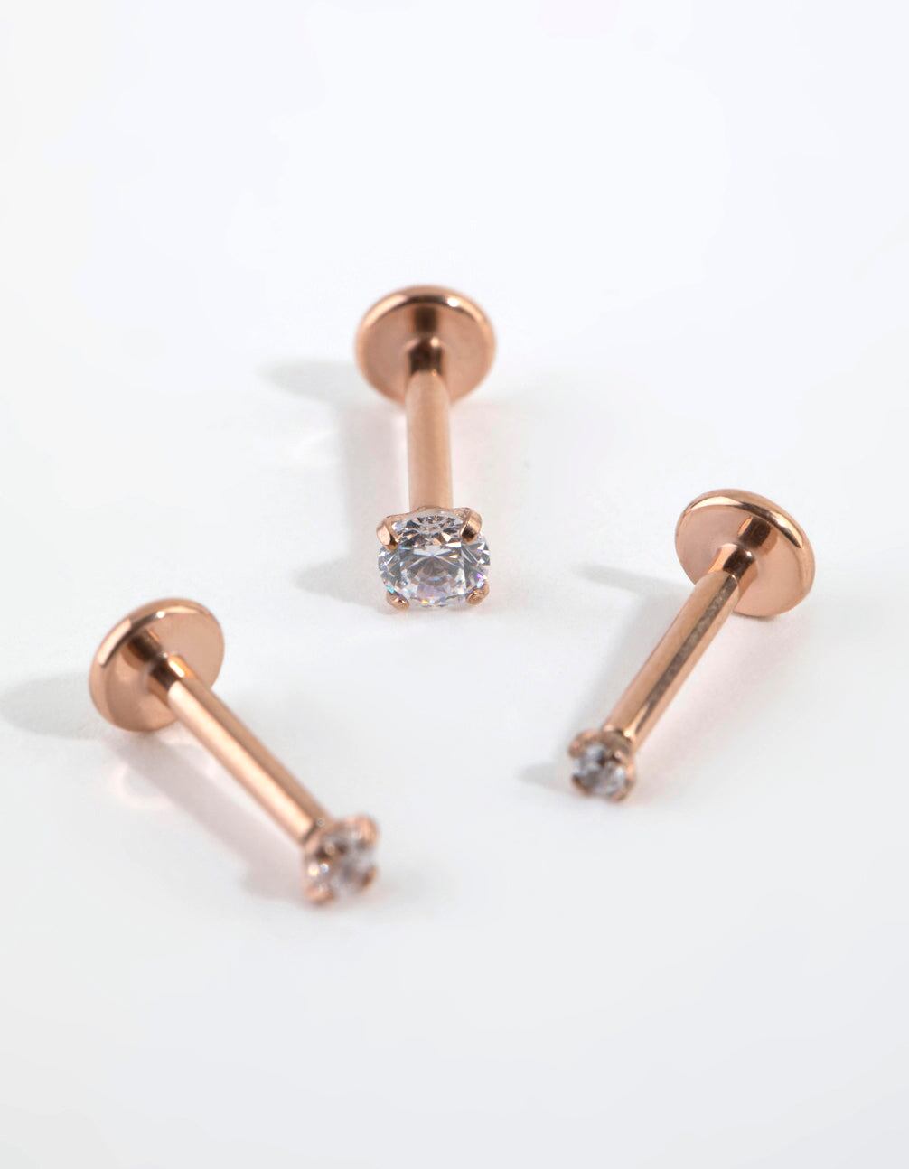 Material: Cubic Zirconia. TitaniumColour: Rose goldGauge: 16 g / 1.2 mmWeight: 15.1gSuitable for these piercing placements: