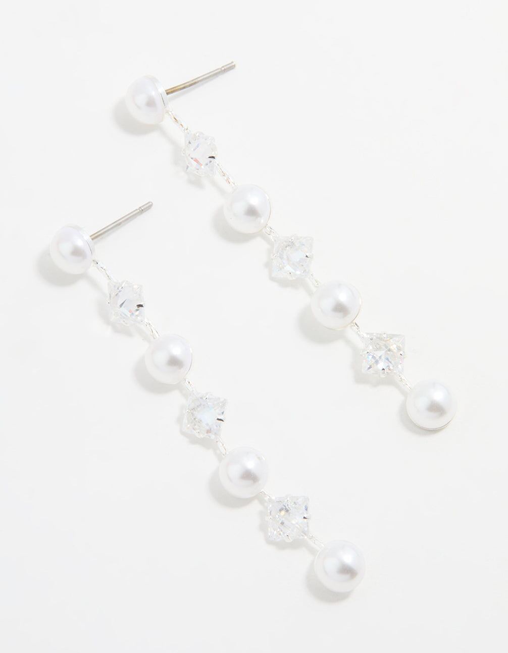 Silver Plated Cubic Zirconia & Pearl Drop Earrings