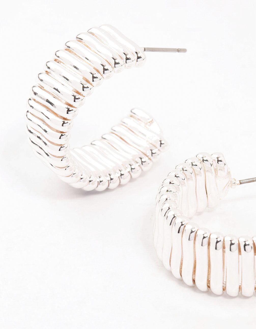 Elevate your style with these silver-plated hoop earrings. Their wide. ribbed design adds a modern twist to a classic accessory. giving your outfits a glamorous. head-turning finish. Perfect for a stylish touch.
