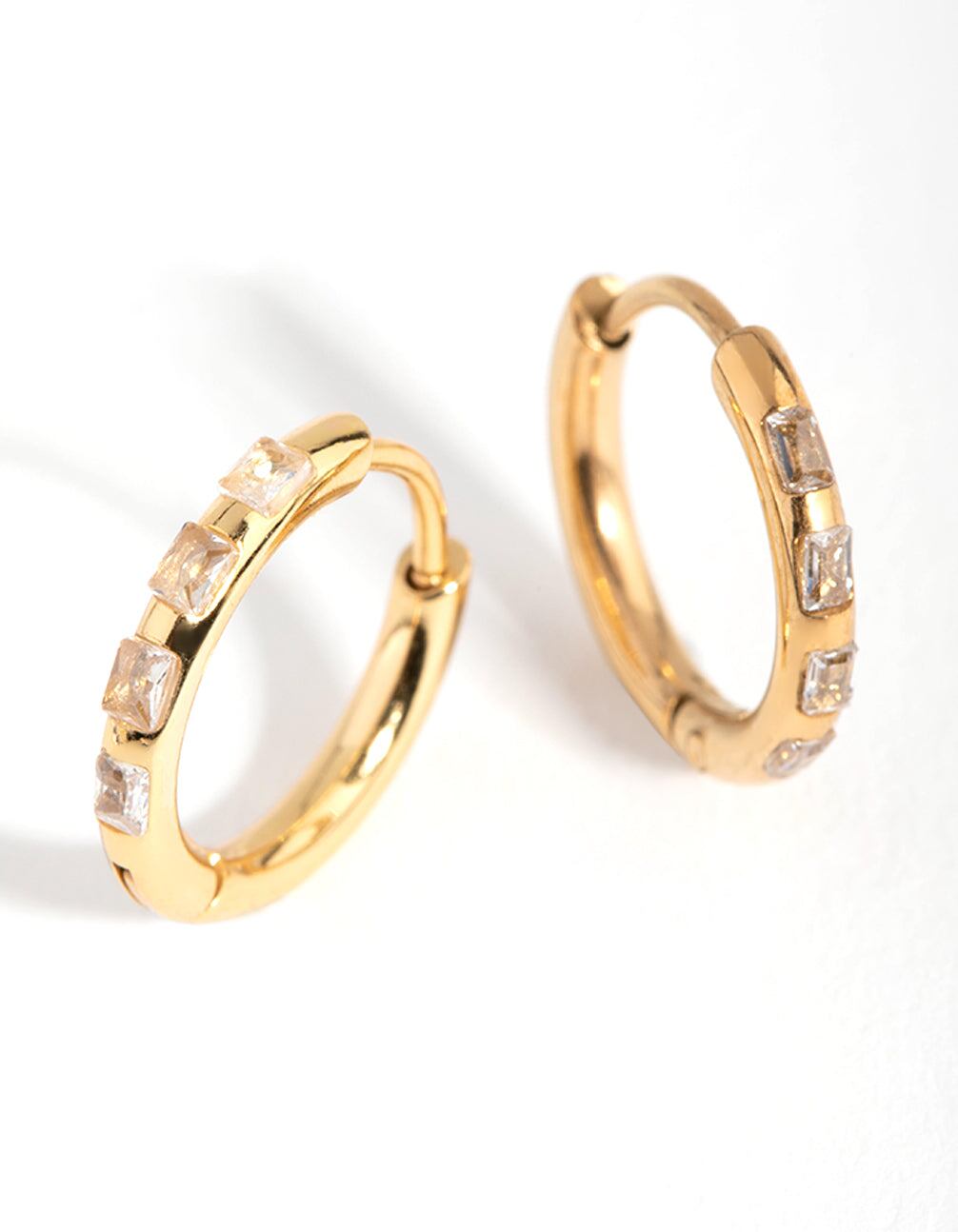 24 Carat Gold Plated Surgical Steel Diamante Huggie Earrings