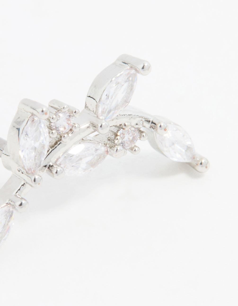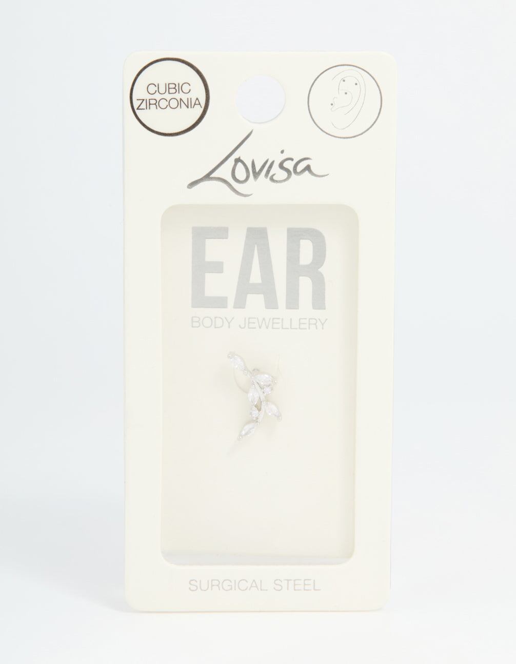 Stainless Steel Cubic Zirconia Curved Vine Single Flat Back Stud