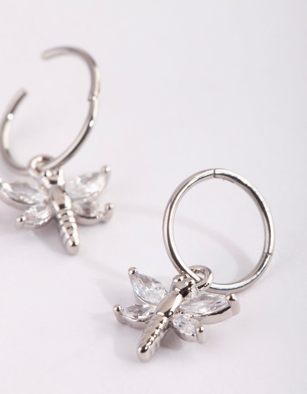 Surgical Steel Cubic Zirconia Dragonfly Hoop Earrings