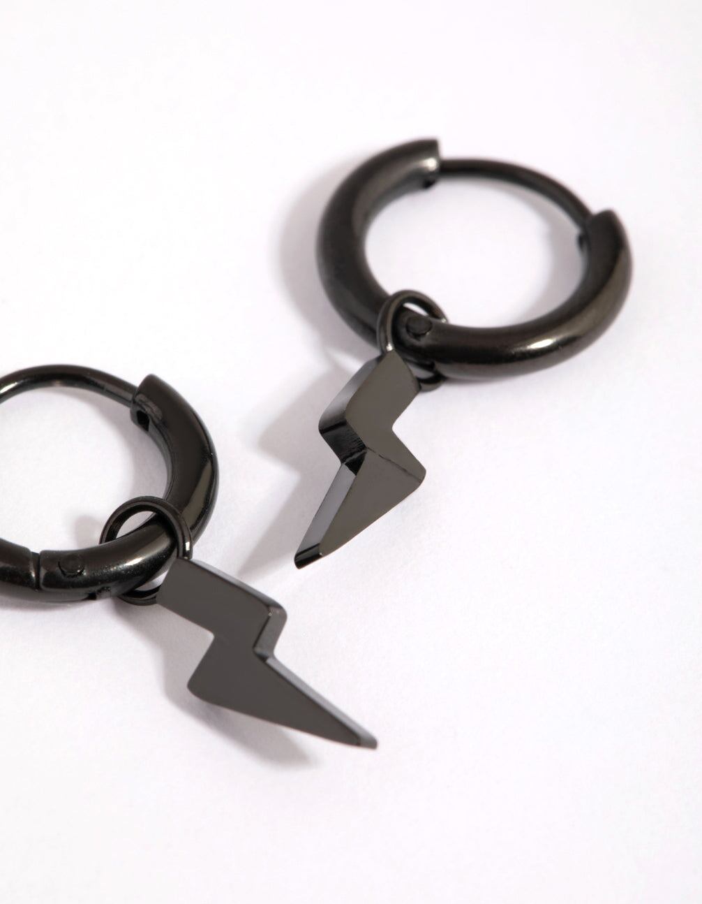Designed with sensitive skin in mind. the Lovisa Sensitive Jewellery Collection utilises premium materials that reduce the risk of irritation. These matte black earrings are made with surgical steel so they're gentle on skin. They feature a huggie hoop design with lightning bolt charms.