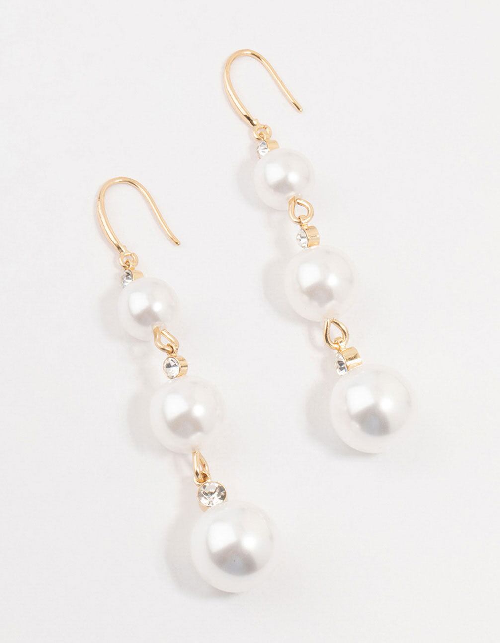 Gold Diamante Pearl Drop Earrings
