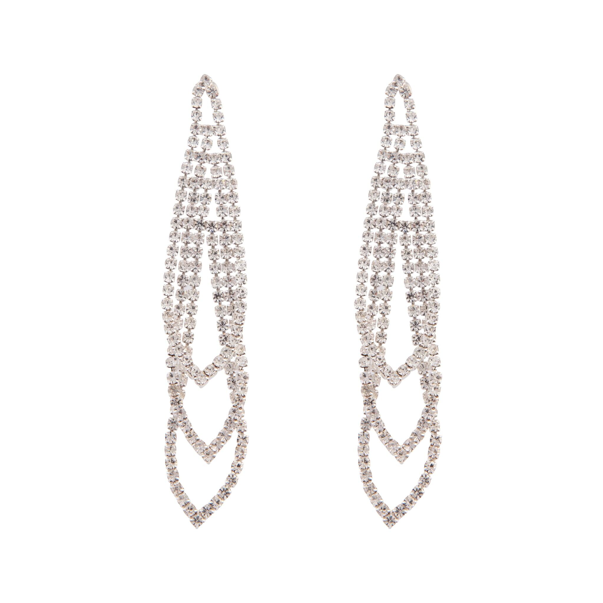 A pair of silver-toned earrings with a cup chain diamante design.