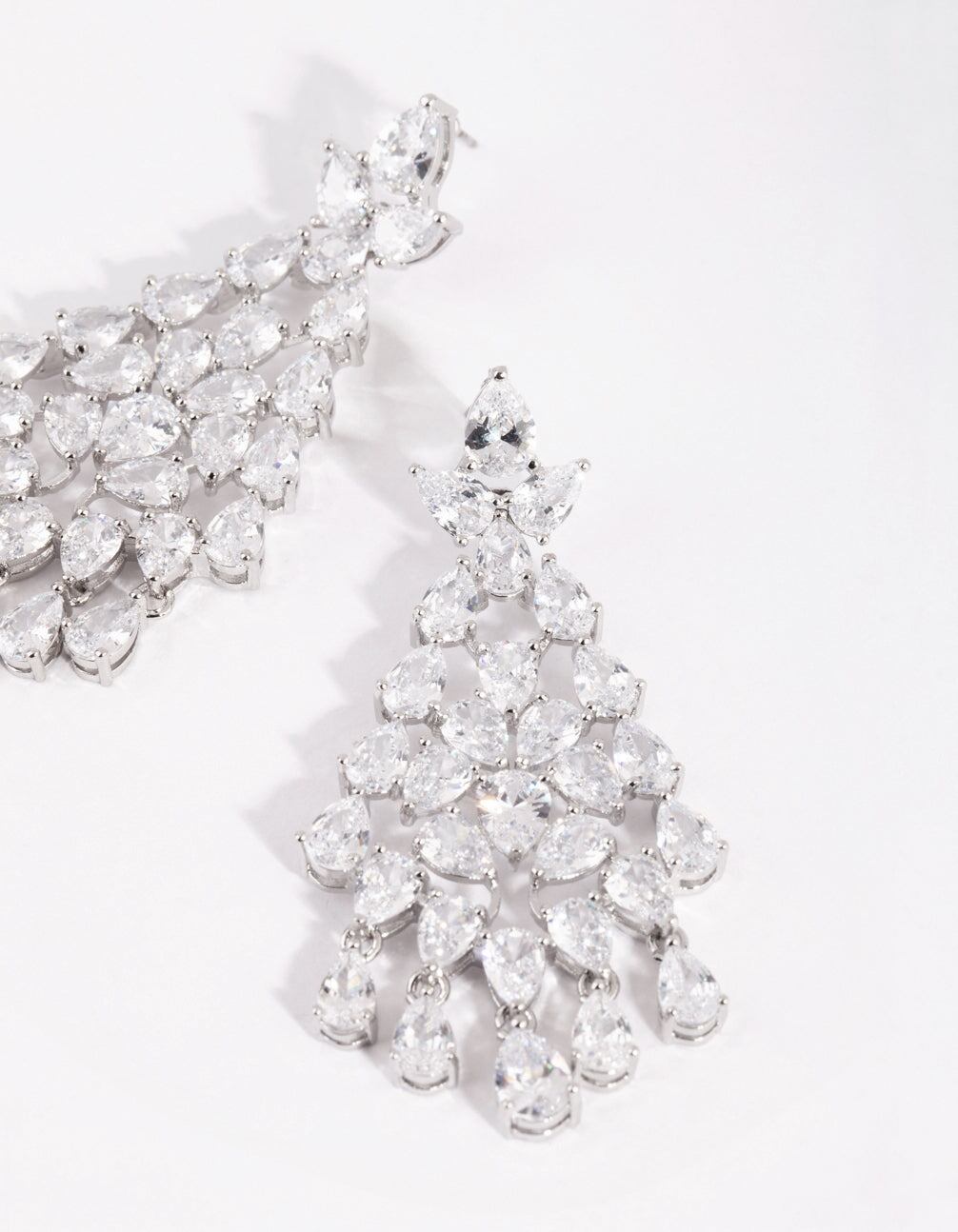Silver Cubic Zirconia Statement Chandelier Drop Earrings