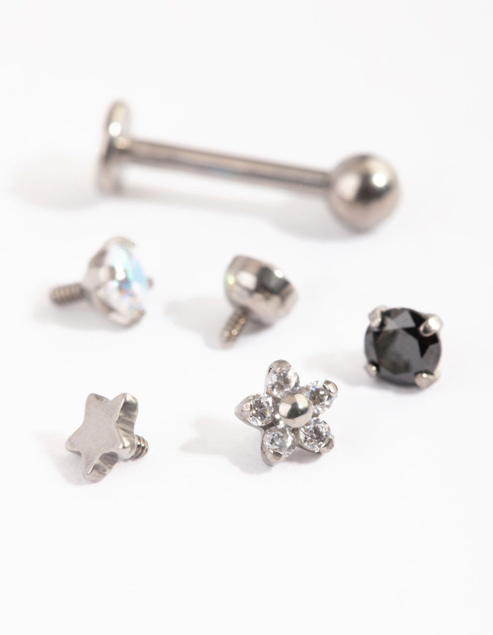 Express your individuality with Lovisa Body Jewellery! This flat back pack has been made with titanium. so it's gentle on skin. The earring features a smooth backing which makes it more comfortable to wear in cartilage piercings and ear stacks. The pack includes one post. and six different ends so you can change it up to suit your mood! The gauge measures 16G/1.2mm.