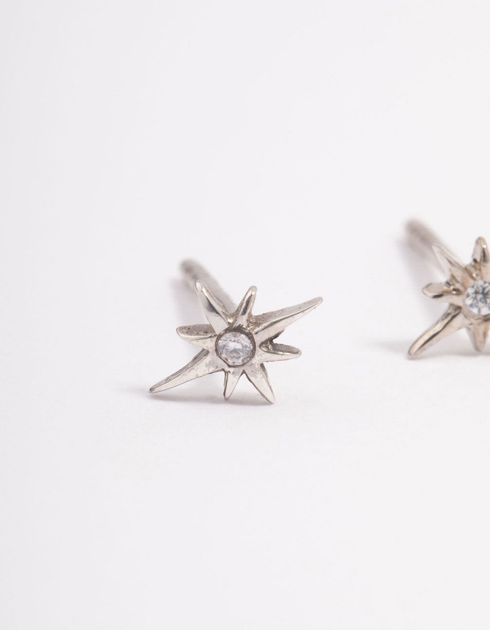 These timeless stud earrings feature a celestial. star-shaped design with mini cubic zirconia crystals in the centre. Perfect for styling in your everyday stack.