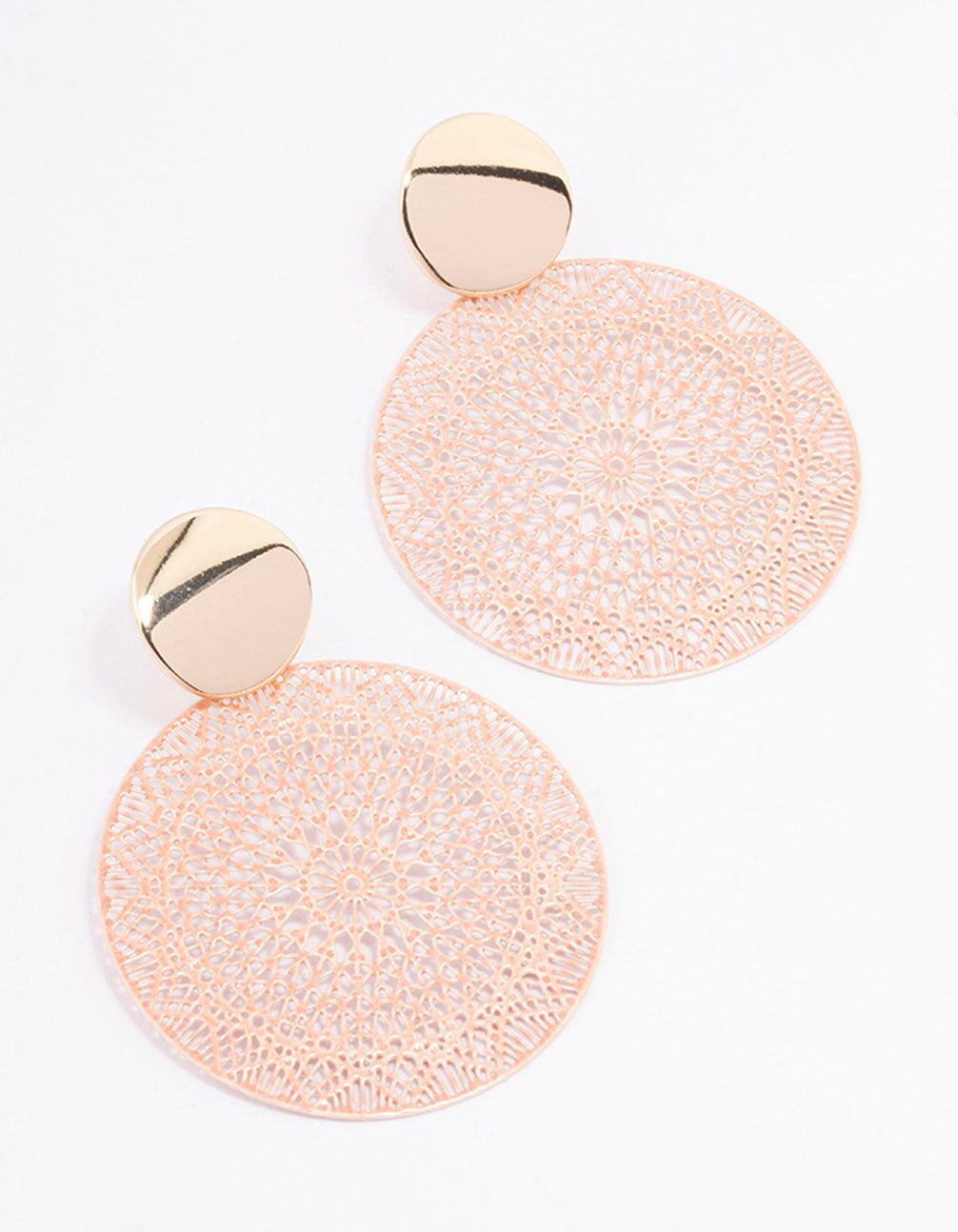 Gold Mixed Disc Filigree Drop Earrings
