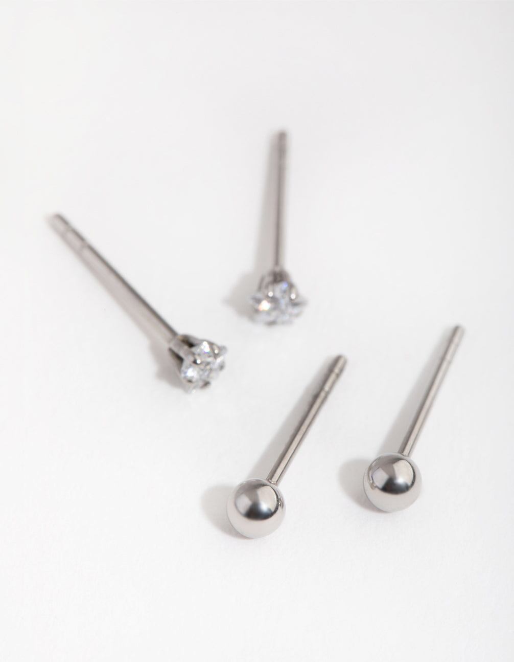 Designed with sensitive skin in mind. the Lovisa Sensitive Ears Collection utilises premium materials that reduce the risk of irritation. This set includes two pairs of surgical steel studs; one pair with star shaped diamante embellishments and one pair of polished ball studs.