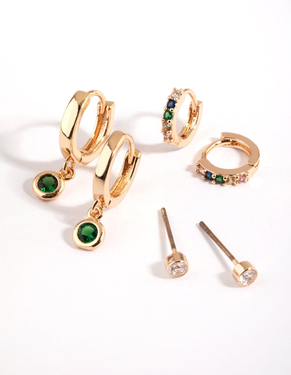 Green Stud & Huggie Hoop Earring Stack Pack