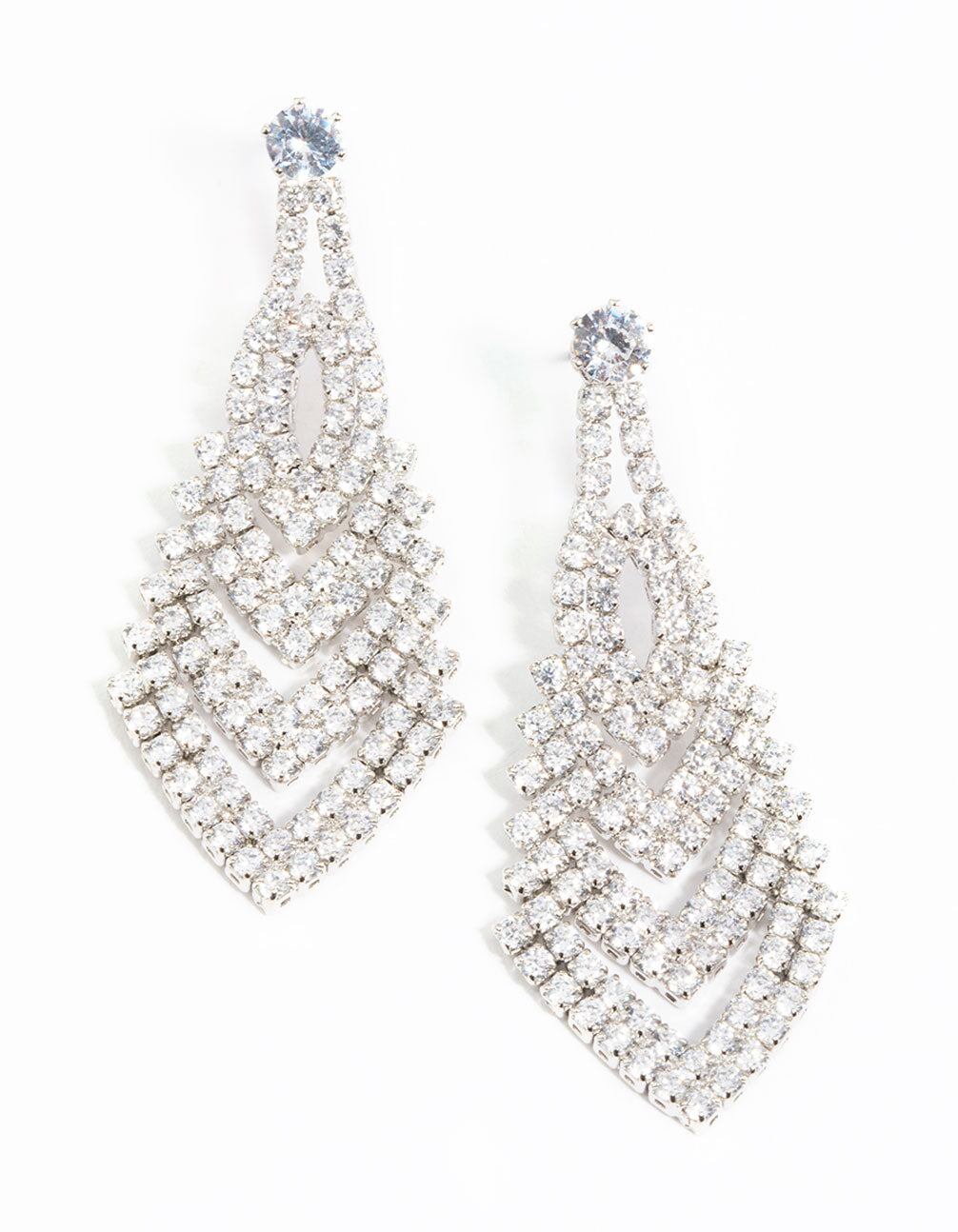 Silver Cubic Zirconia V Drop Earrings