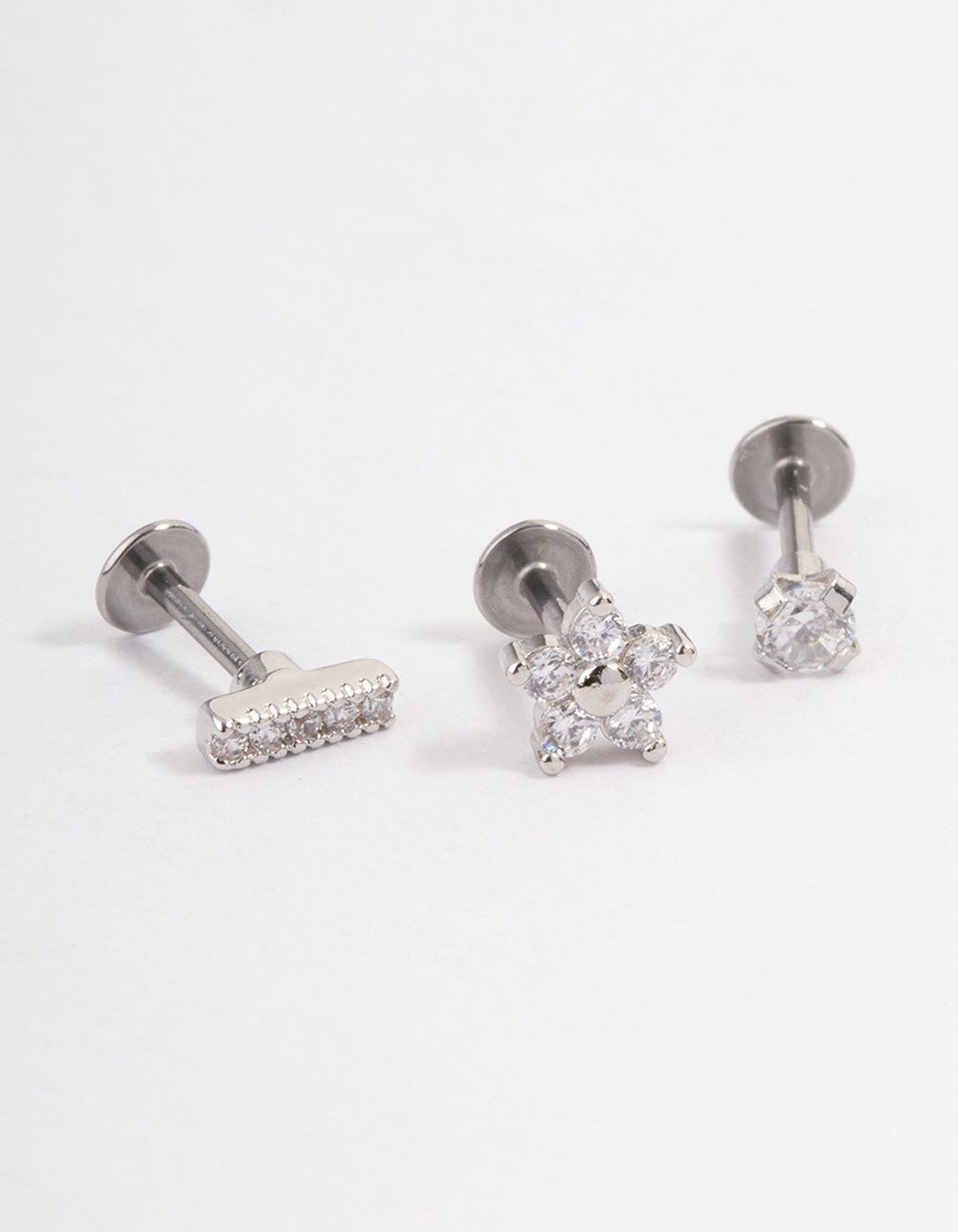 Surgical Steel Cubic Zirconia Floral Flat Back Pack