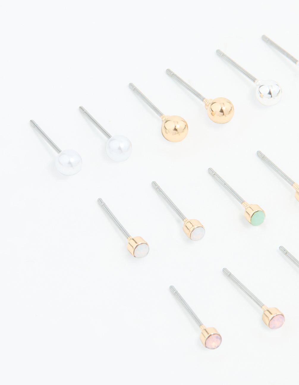 Gold Mixed Basic Small Stud Earrings 8-Pack
