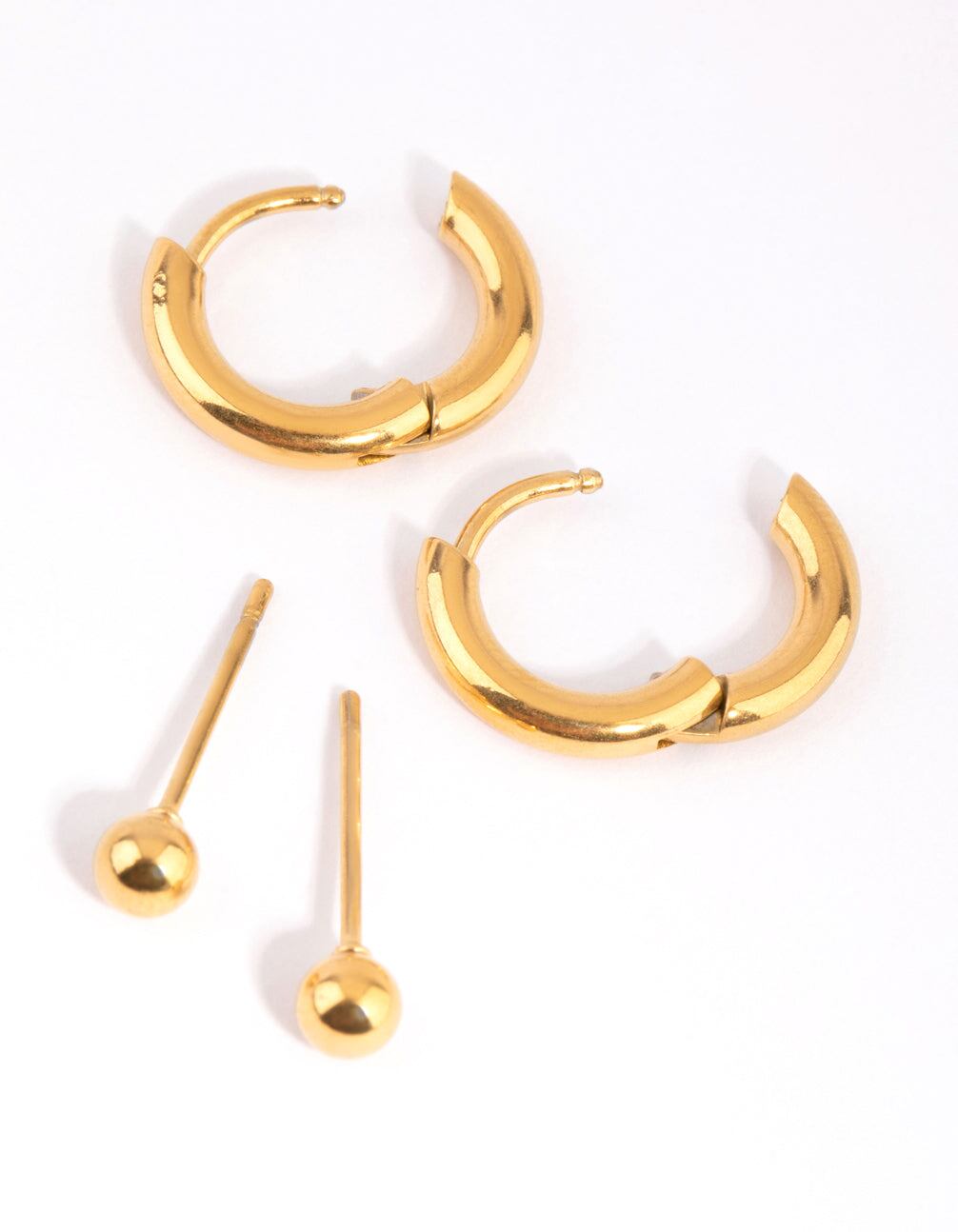 Gold Plated Surgical Steel Stud & Huggie Earring Set