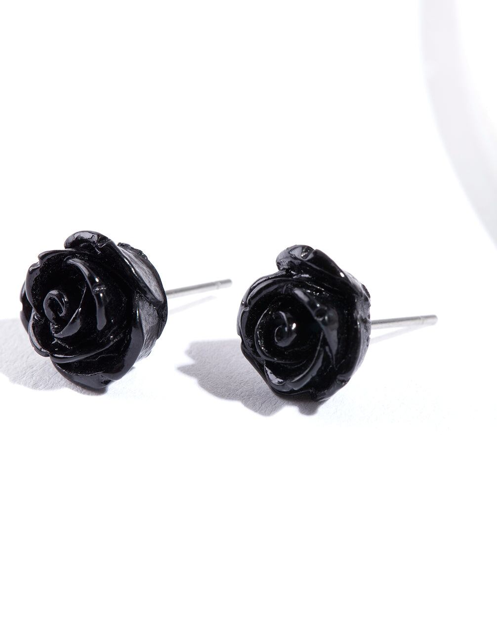 Decorate your ears with our black rose stud earrings.