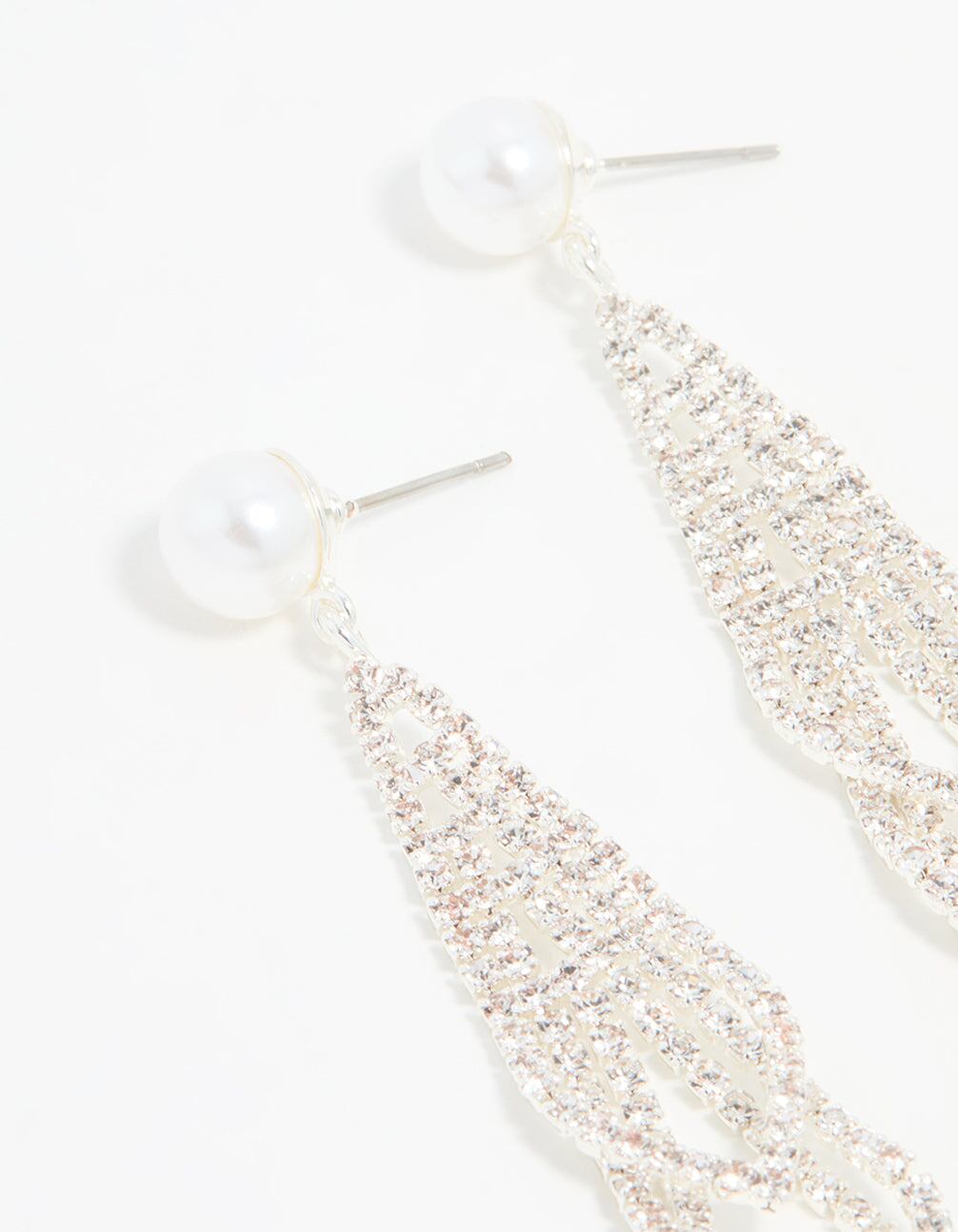 Silver Pearl Triangular Layered Earrings 2-Pack