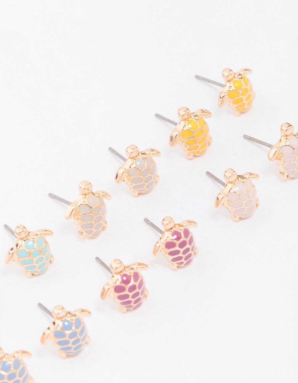 Gold Multi-Coloured Turtle Stud Earring 8-Pack