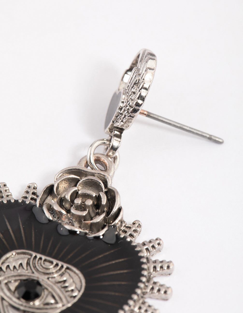 Enter your silver era with these silver-toned. enamel heart and rose drop earrings for a romantic finish. Pair these drops with matching accessories from our Heart Edit for a lovable look.
