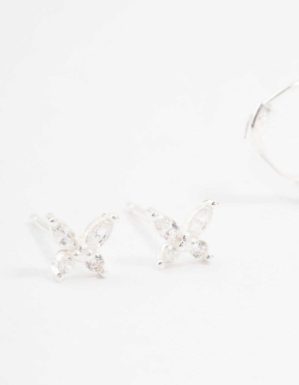 Sterling Silver Butterfly & Hoop Stud Earrings 2-Pack