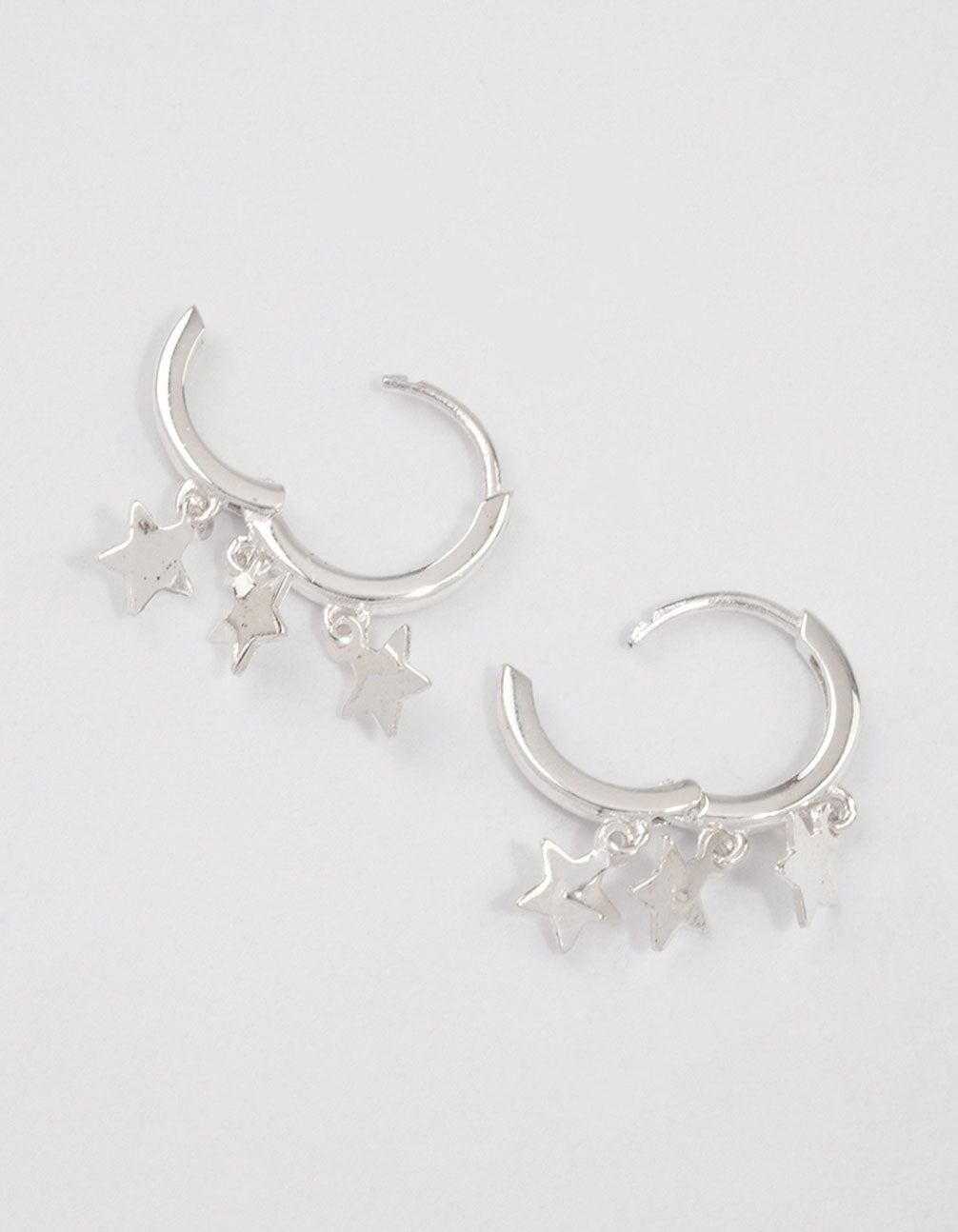 Sterling Silver Trio Star Huggie Earrings